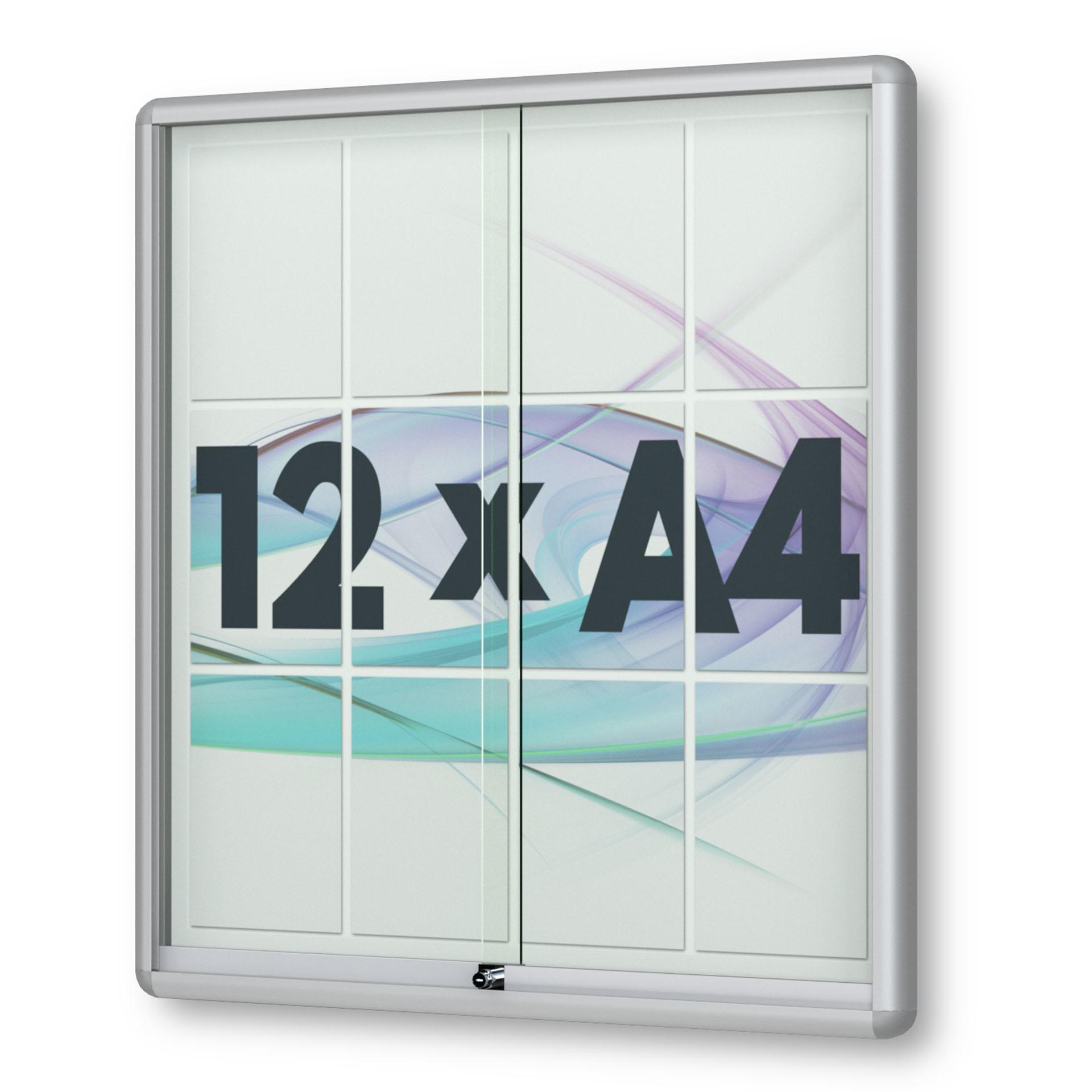 12 x DIN A4 Schaukasten Moveo - "die Schulvitrine" - 210 mm Bautiefe - mit Brandschutzklasse A1 - Rollengelagerte Schiebetüren✓ abschließbar✓ ESG-Sicherheitsglas✓