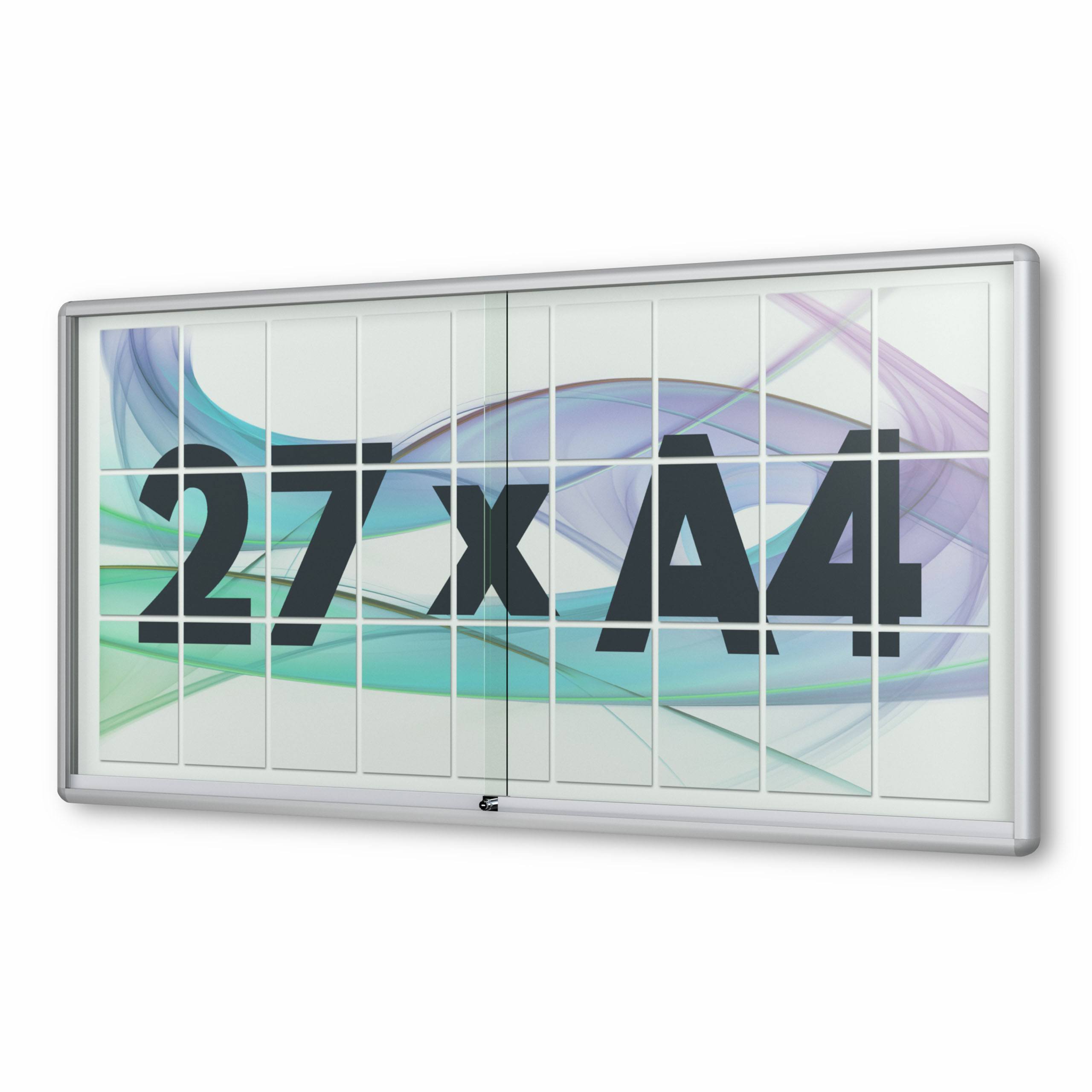 27 x DIN A4 Schaukasten Moveo - "die Schulvitrine" - 50 mm Bautiefe - mit Brandschutzklasse A1 - Rollengelagerte Schiebetüren✓ abschließbar✓ ESG-Sicherheitsglas✓